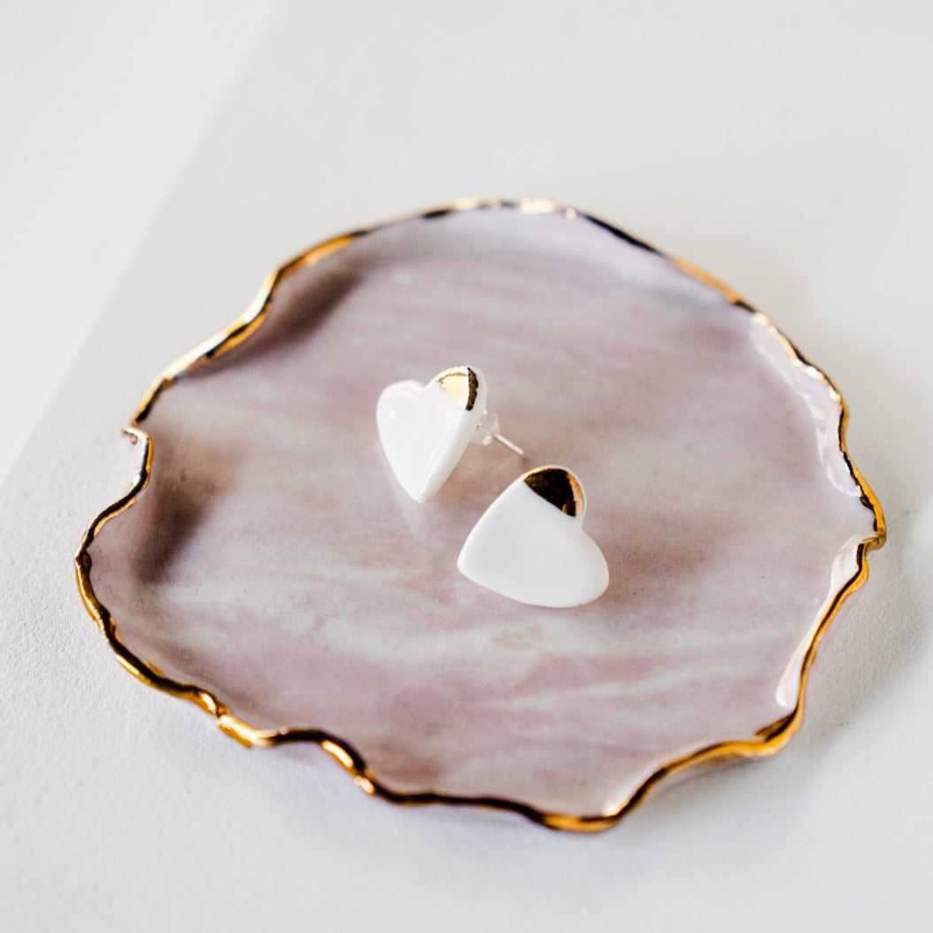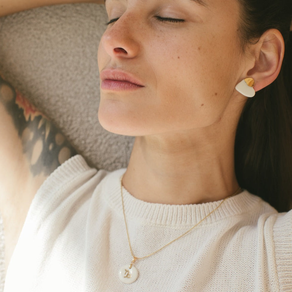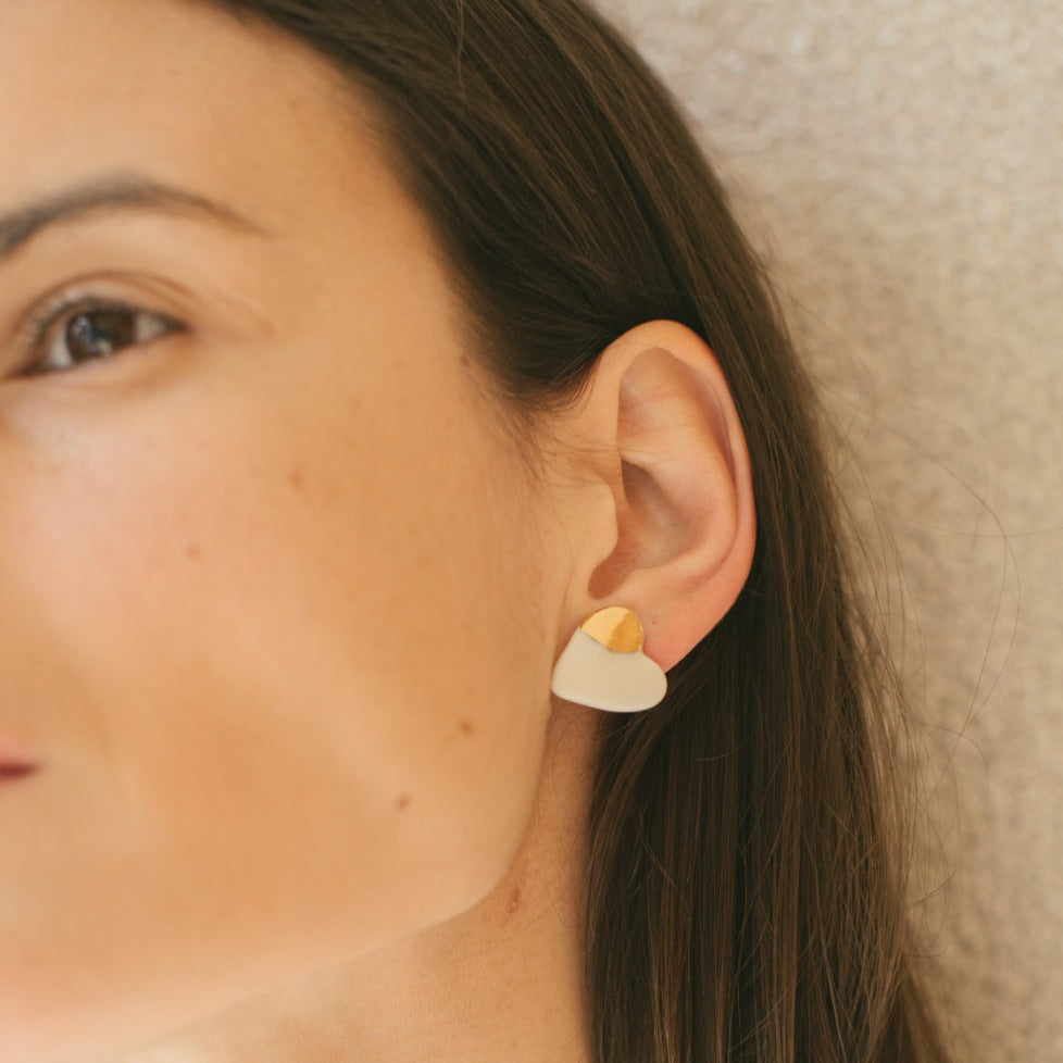 Aros modelados a mano en porcelana esmaltada y oro amarillo. Ganchito de plata 925 libre de níquel, muy livianos.