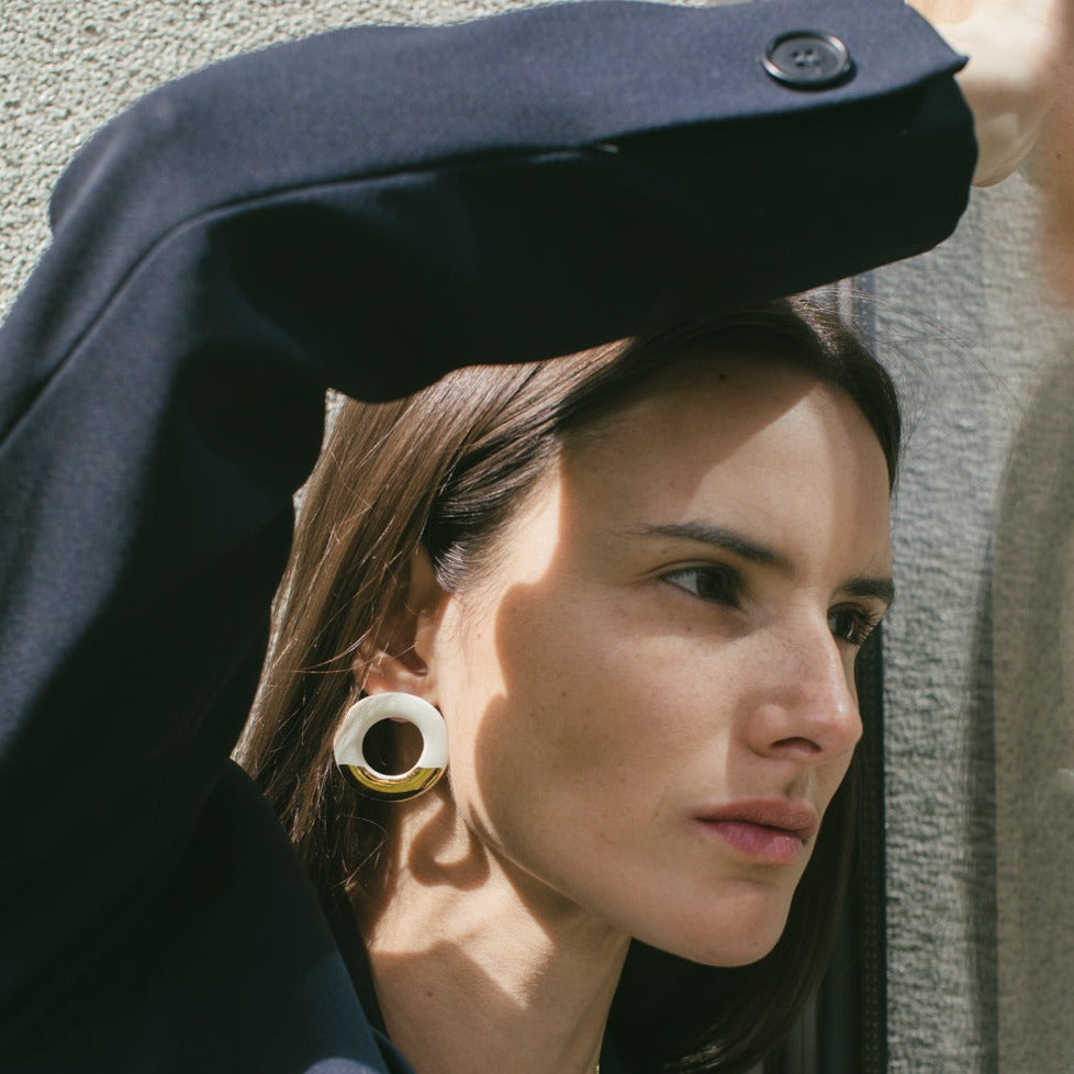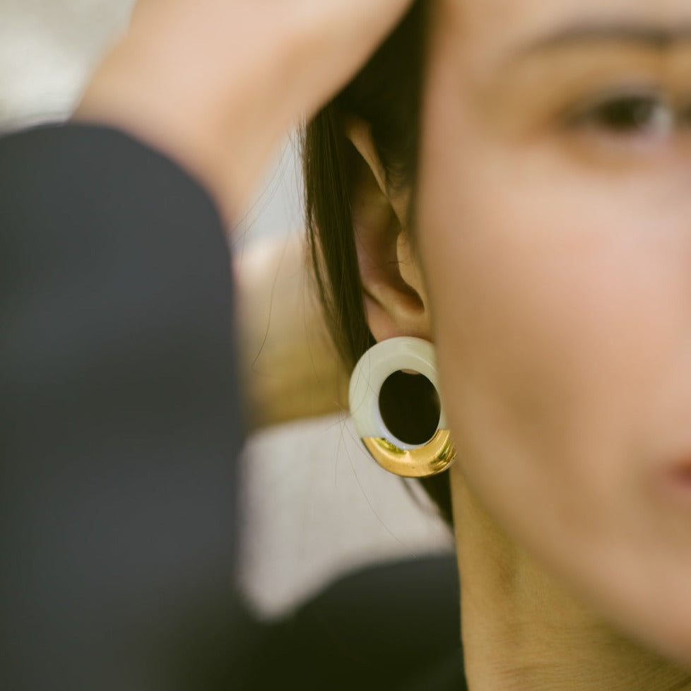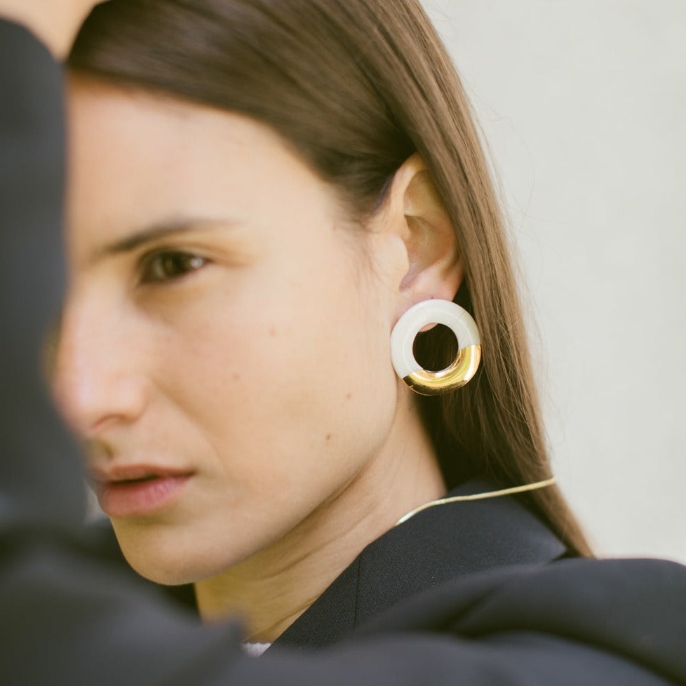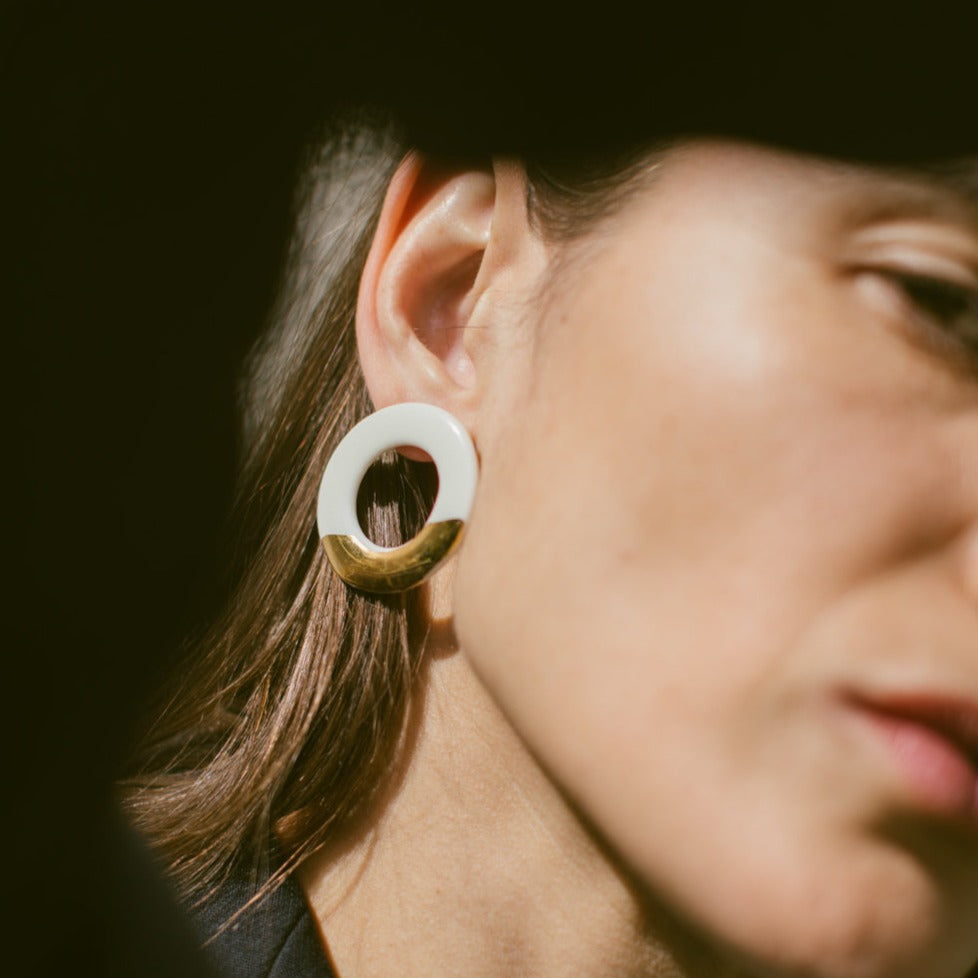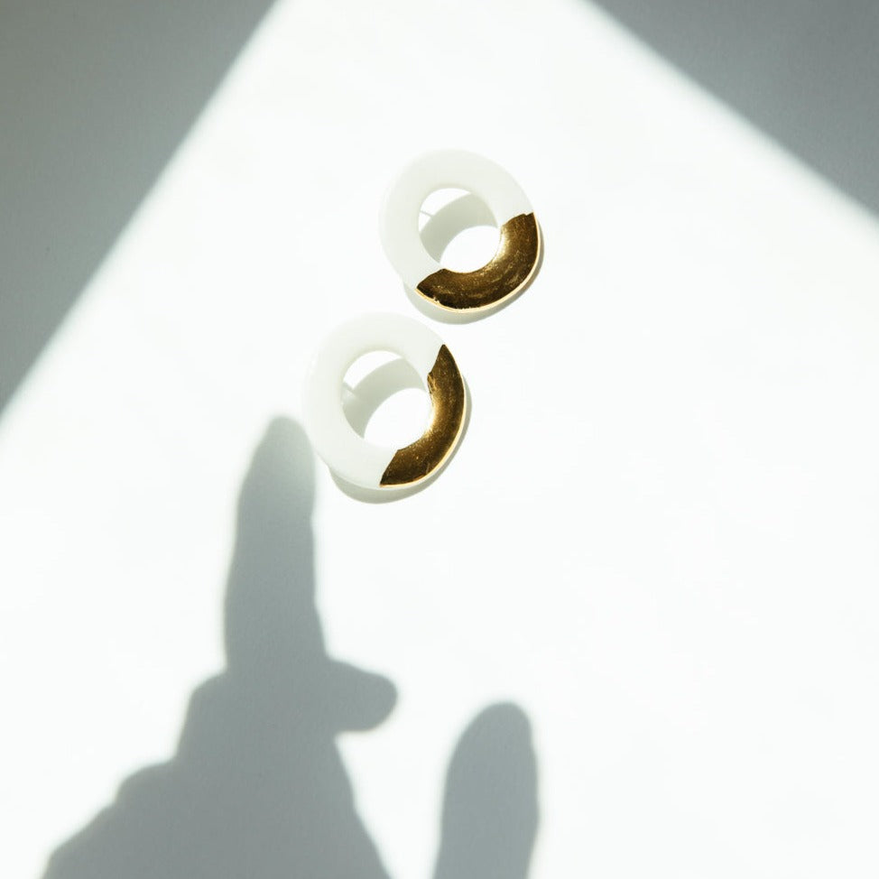 Aros modelados a mano en porcelana esmaltada y oro amarillo. Ganchito de plata 925 libre de níquel.