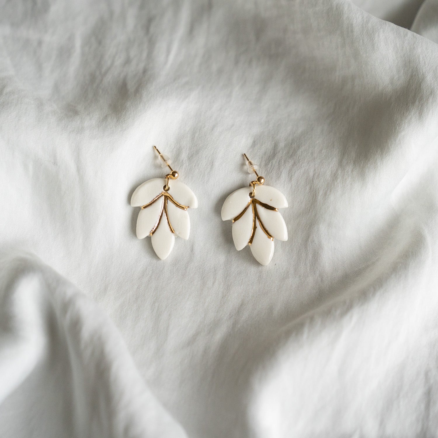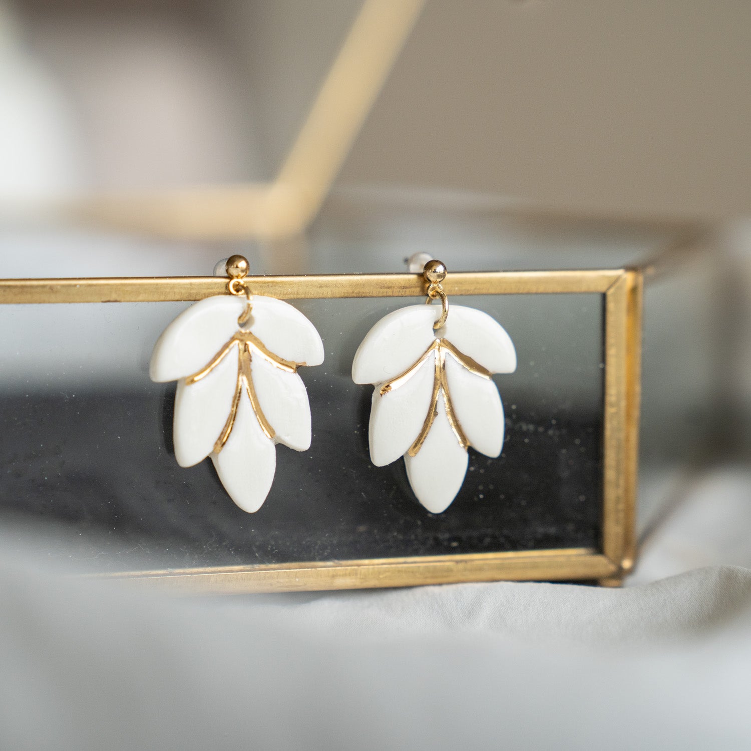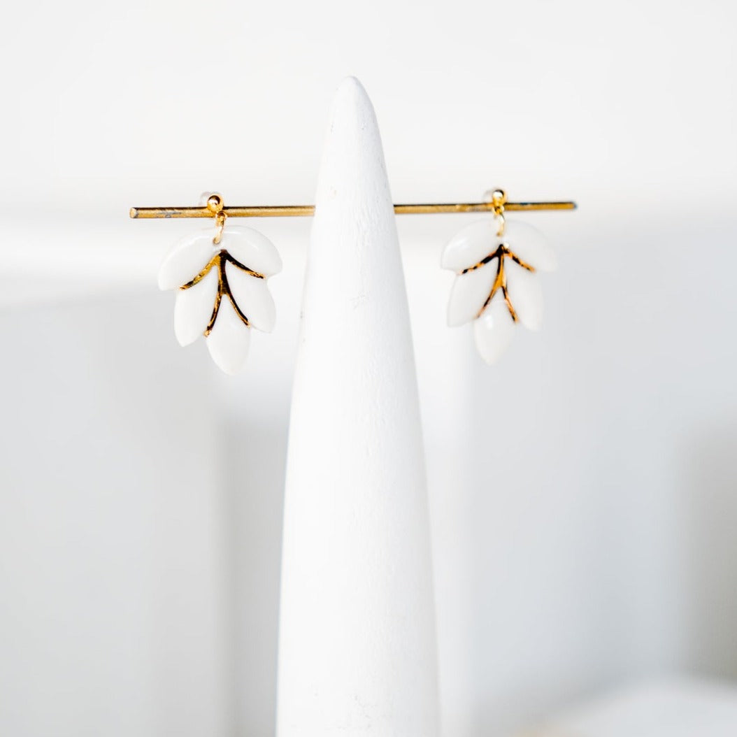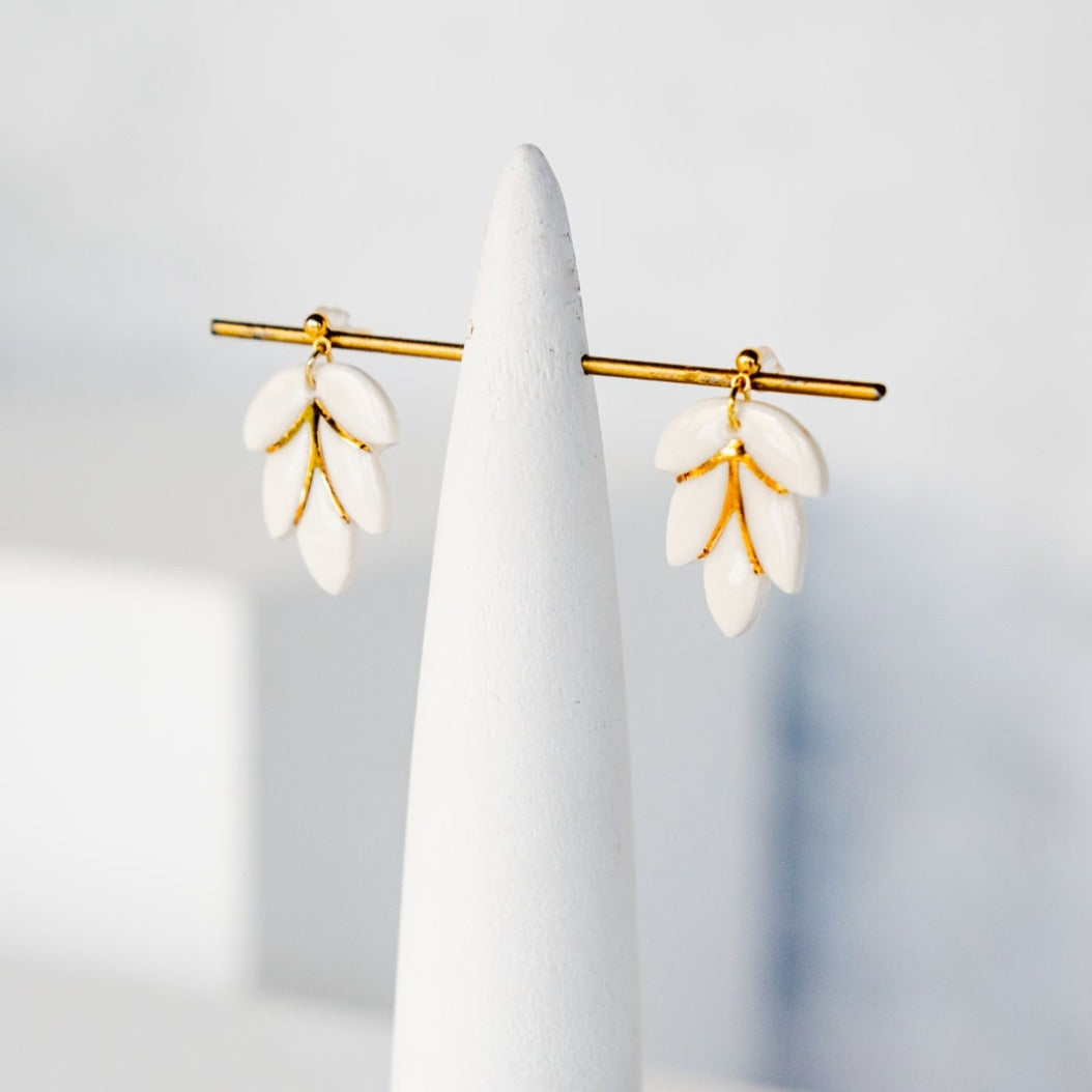 Aros colgantes modelados a mano en porcelana esmaltada y oro 22k. Ganchito en baño de oro, muy livianos.