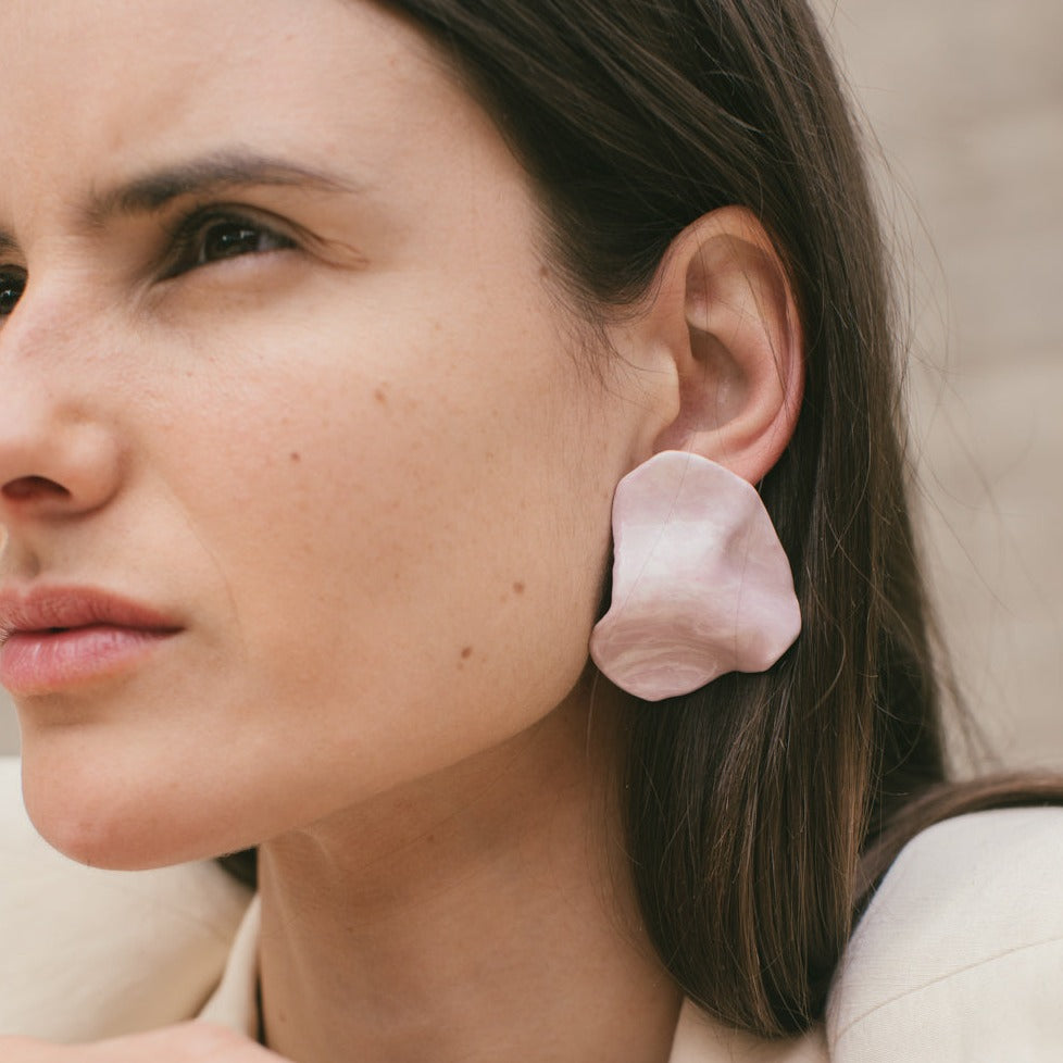 Aros asimétricos, pieza única. Porcelana pigmentada, modelada y esmaltada a mano, ganchito de plata 925.